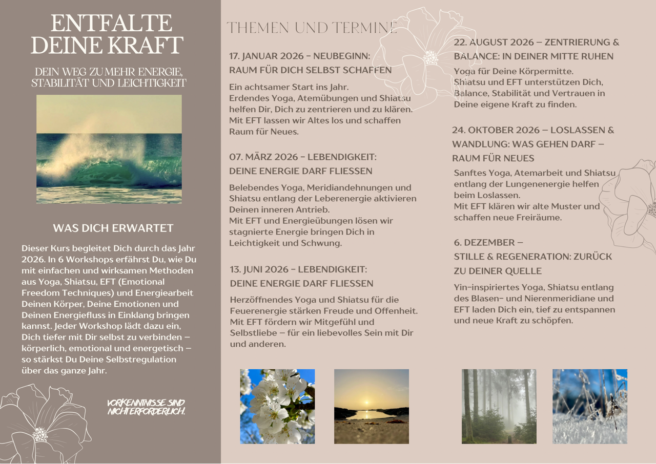 Jede Session gestalten wir nach Deinen aktuellen Bedürfnissen – ob systemisches Gespräch, Yoga, EFT oder Shiatsu. Mal steht die mentale Reflexion im Vordergrund, mal die körperliche Erfahrung. Gemeinsam entscheiden wir, was Dir in diesem Moment am besten hilft.